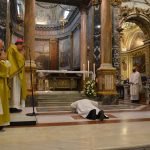 Come capitato a Marcello, che la chiamata a una vita da spendere tutta per lui l’ha avuta in età adulta. E che ora, aspettando di diventare prete, per un po’ dovrà esercitare il diaconato, facendosi servo come quelli, ha concluso don Domenico, «che sono inviati ad andare “ai crocicchi delle strade“». “Ai crocicchi” per toccare la realtà e non starsene a debita distanza. Ciò vuol dire muoversi e non attendere, inventare e non deprecare, sporcarsi le mani e non immunizzarsi dal contatto con gli altri. Ce la farai caro Marcello, se sulle tue labbra fiorirà la parola di Paolo: “Tutto posso in colui che mi dà forza”».