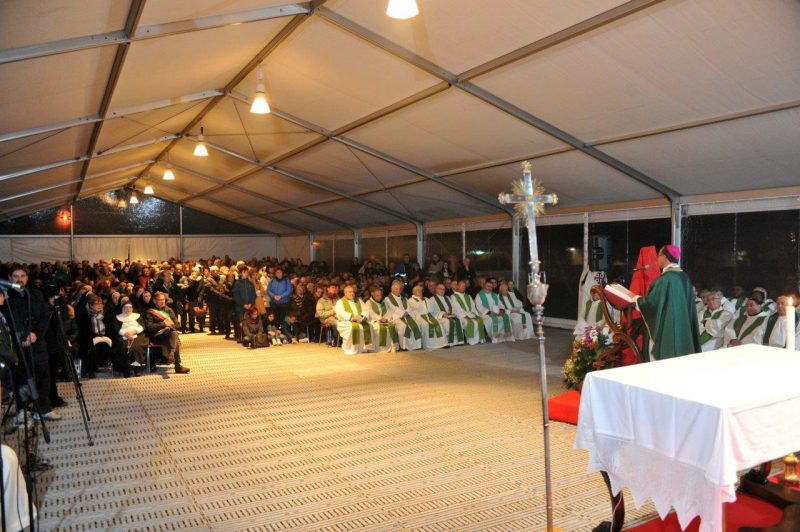 Oltre 500 persone nella tensostruttura allestita per celebrare, con una messa di ringraziamento, la chiusura diocesana dell’Anno Santo della Misericordia