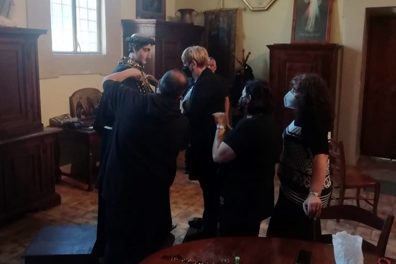 Mattinata di preparativi in Sant’Agostino, per i confratelli della Pia Unione Sant’Antonio, tutti intenti a predisporre ogni dettaglio per l’apertura dei festeggiamenti antoniani