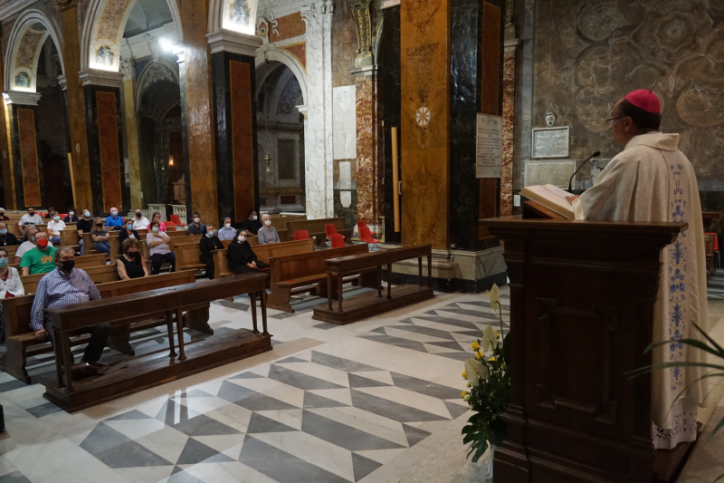 Il senso della chiesa di mattoni si coglie solo guardando alla Chiesa delle “pietre vive”, di quanti sanno adorare Dio “in spirito e verità”. Riuniti a celebrare la memoria della consacrazione della chiesa madre, che il 9 settembre del 1225 papa Onorio III dedicava alla santa Madre di Dio, sacerdoti e fedeli hanno accolto la riflessione del vescovo Domenico Pompili, che ha preso spunto dal brano in cui Ezechiele riceve la visione del nuovo tempio: visione ricevuta quando il tempio di Gerusalemme è distrutto dai Babilonesi che hanno deportato in schiavitù il popolo eletto, e dunque il profeta e sacerdote «esiliato in una terra senza tempio, ma non senza Dio» e deve imparare «in fretta una fede essenziale che lo spinse persino a ripensare la sua stessa idea di sacerdozio».