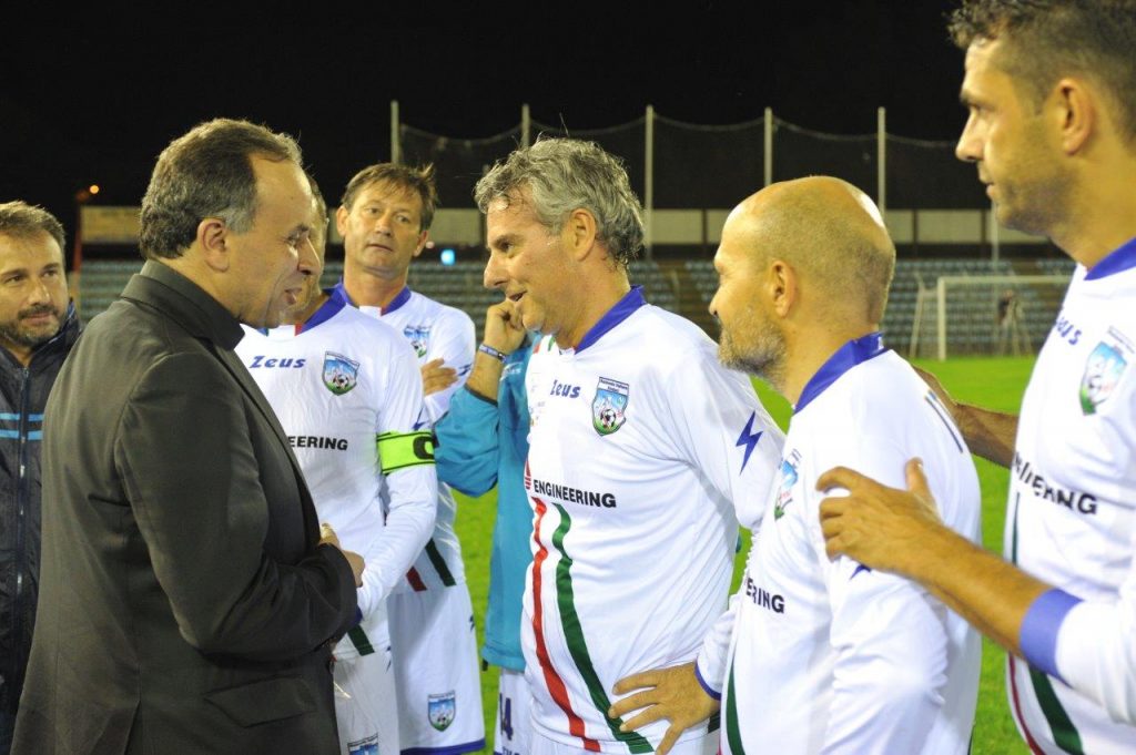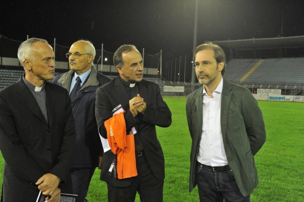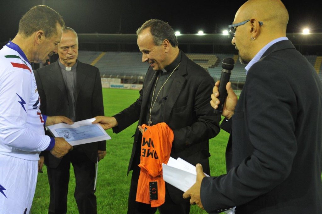 Si è svolto nella serata del 16 settembre allo stadio “Manlio Scopigno” un triangolare di calcio tra la Rappresentativa Vaticana, l’Associazione Italiana Calciatori e la Nazionale dei sindaci. Un torneo che ha portato un’ampia serie di personaggi in campo. Presente anche il vescovo, Domenico Pompili. I 10mila euro raccolti tramite i biglietti e le donazioni sono destinati ai parroci delle zone colpite dal sisma.
