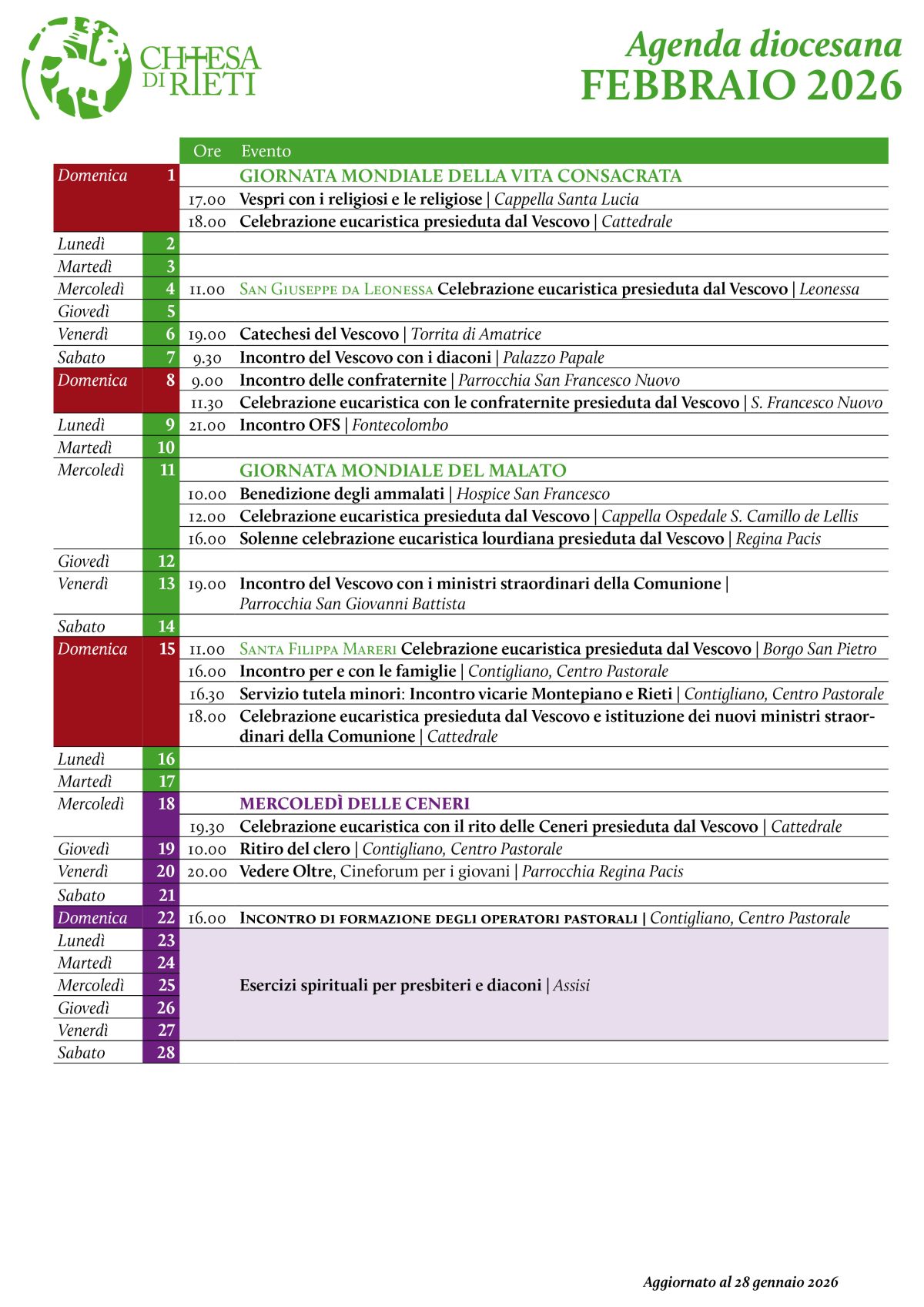 Storico dell’agenda diocesana